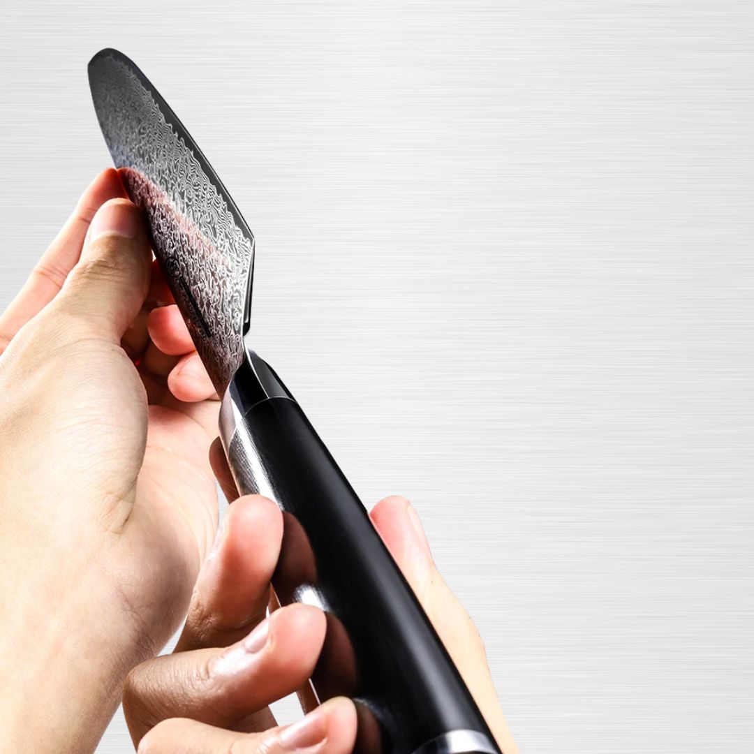 Coltello multiuso: Il coltello utilitario è versatile e progettato per eseguire vari compiti in cucina. La sua dimensione intermedia tra un coltello da chef e un coltello più piccolo lo rende perfetto per lavori di taglio di dimensioni medie, come affettare frutta, verdura, formaggio, sbucciare o tagliare gli alimenti in piccoli pezzi.
