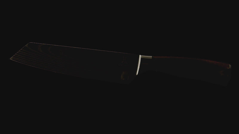 Coltello Nakiri: Il coltello Nakiri è specializzato nel taglio delle verdure. La sua lama dritta e rettangolare offre una ampia superficie di taglio, ideale per tritare, affettare e sminuzzare con precisione. Può anche essere utilizzato come spatola per trasferire le verdure nei piatti.
